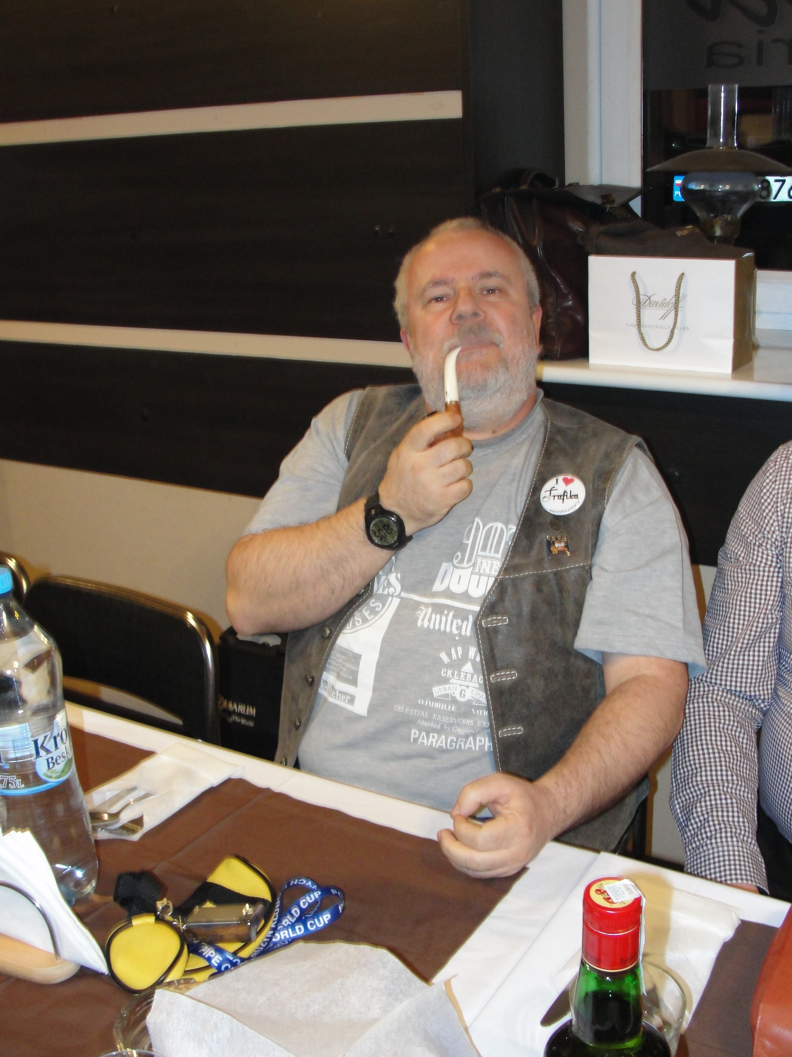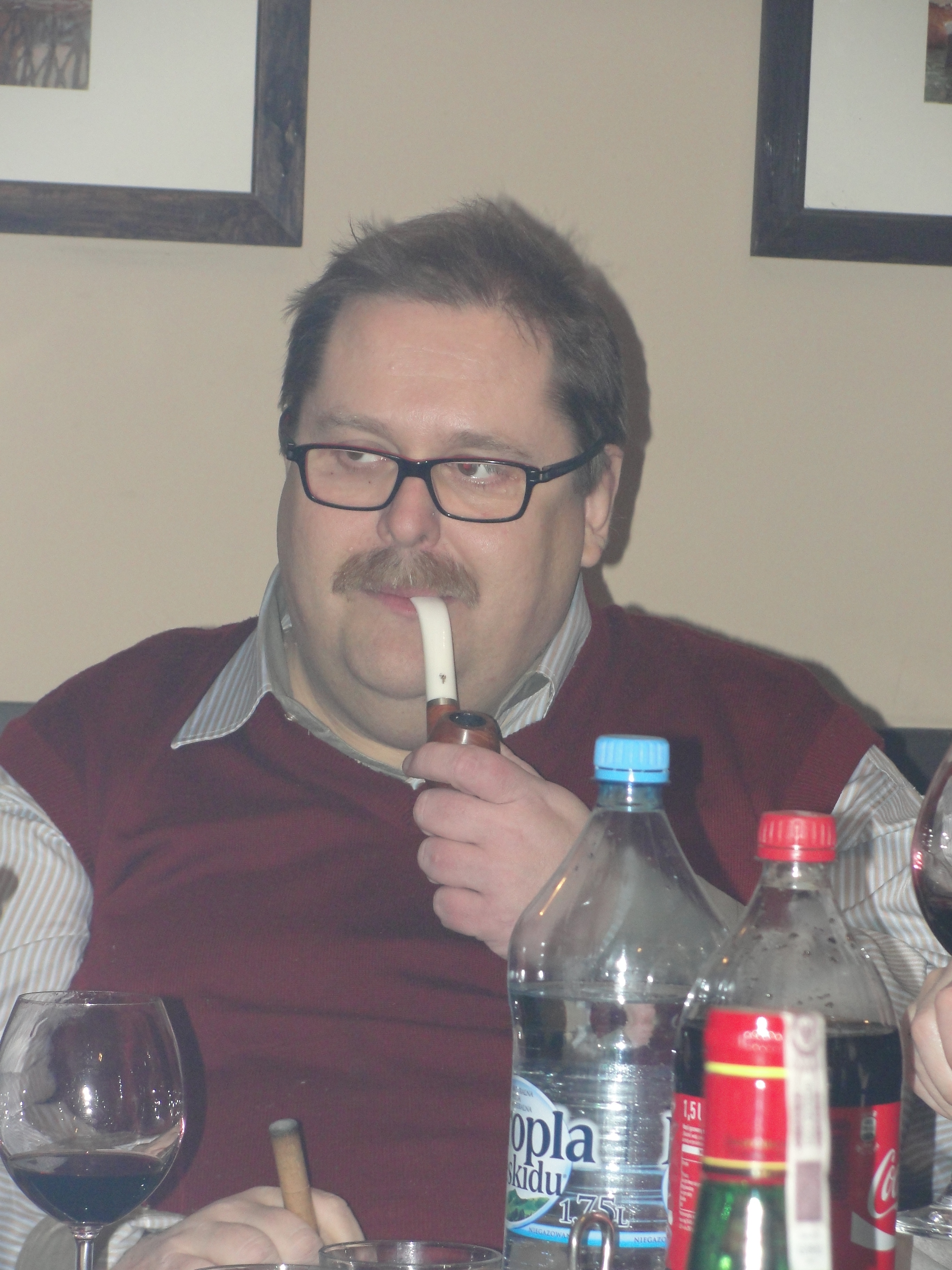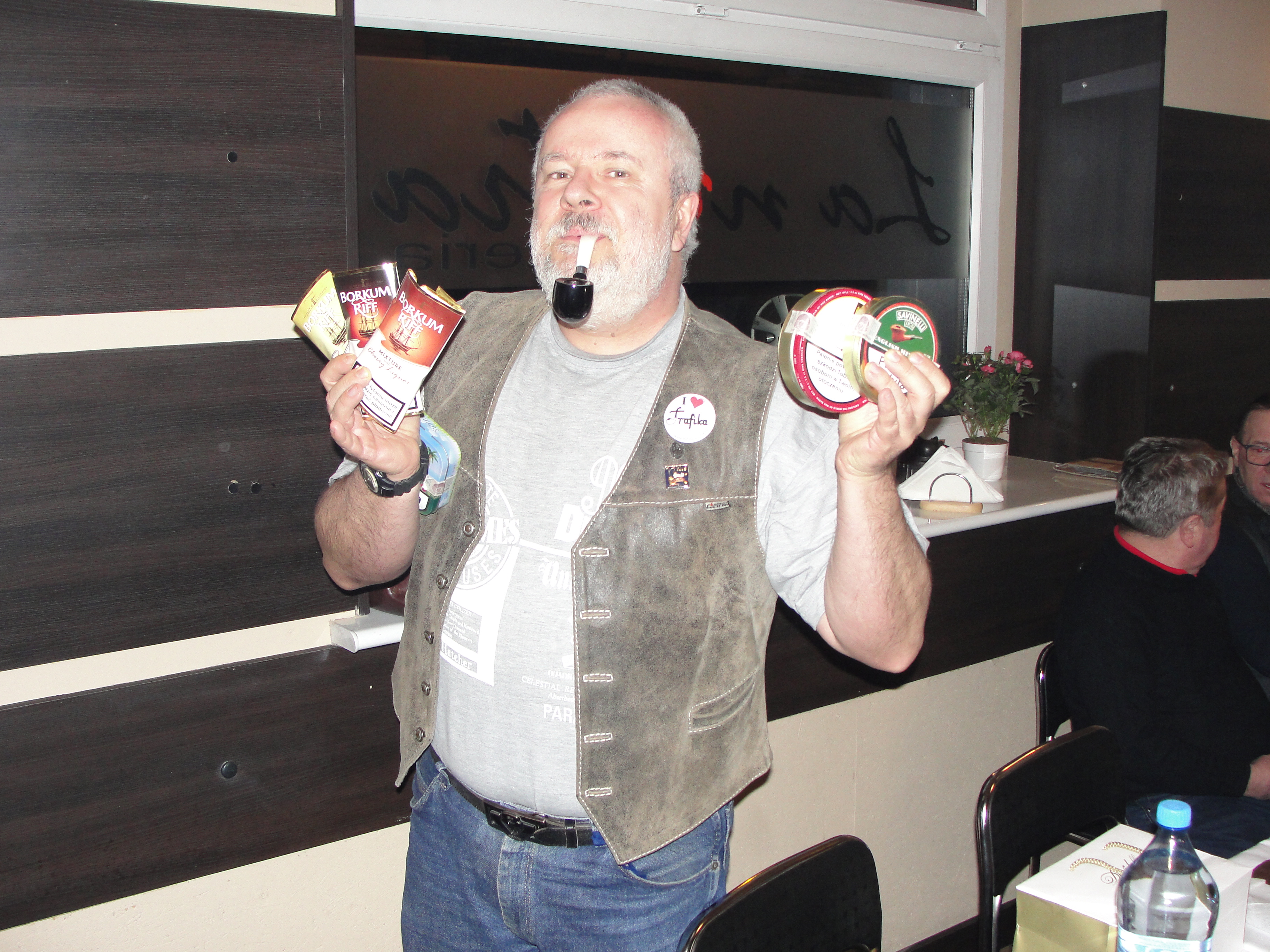 Jednym z nich był honorowy członek naszego Klubu przedstawiciel tej międzymiastowej wersji spotkania, przedstawiciel Przemyskiego Klubu Fajki a zarazem nieoceniony mistrz produkcji wyrobów wspaniałych Henryk Worobiec oraz będący reprezentantem tej międzykulturowej wersji spotkania , również miłośnik fajek i aromatycznego dymu poeta, pianista, kompozytor, tłumacz, prezes Zwiazku Literatów Polskich oddziału w Poznaniu, zasłużony dla kultury polskiej, lider i wokalista , syn pochodzącego z Grecji poety, pisarza i historyka literatury, Nikosa Chadzinikolau – nasz serdeczny przyjaciel Ares Chadzinikolau.